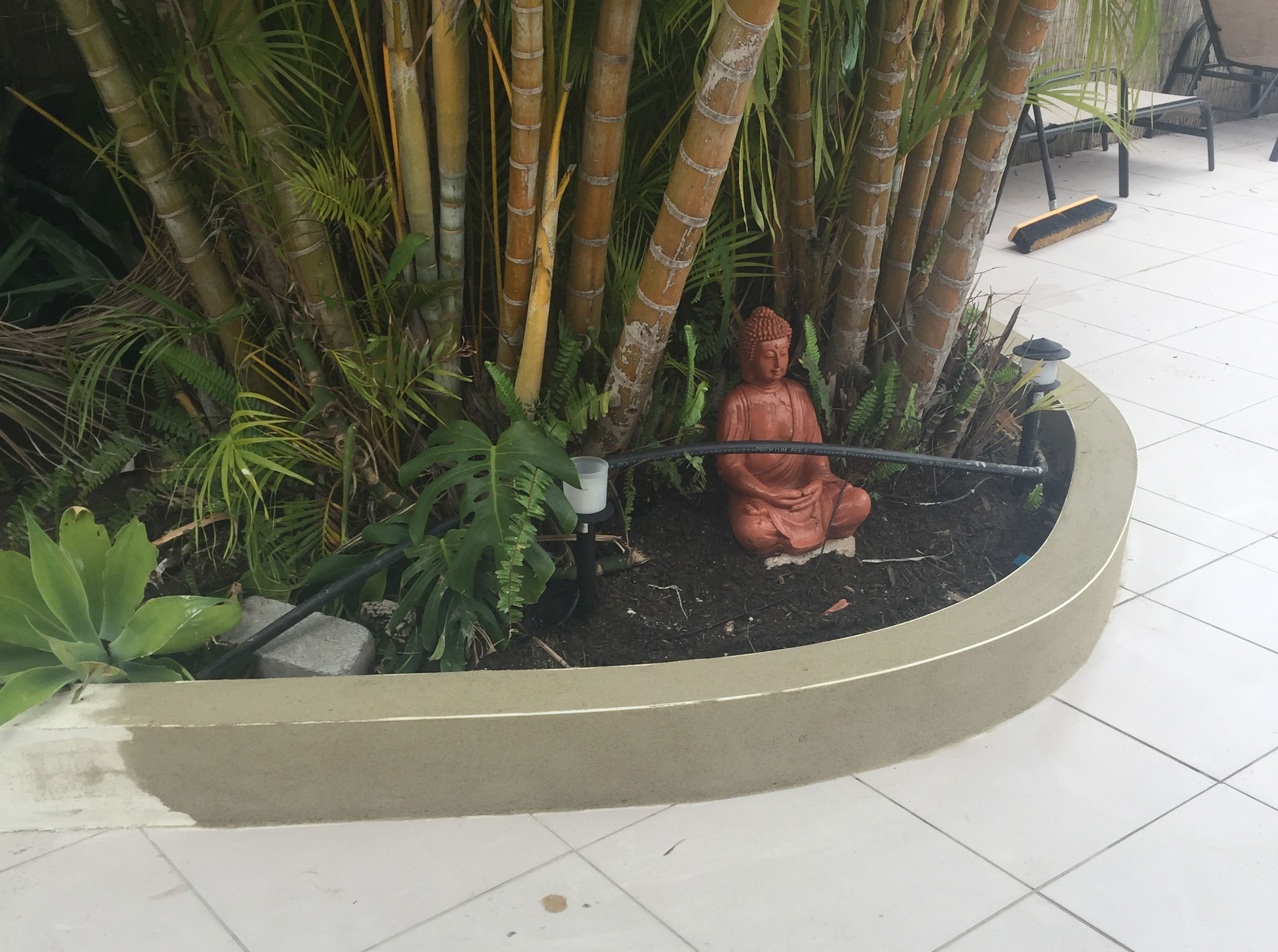 The small retaining wall will keep the garden bed from spilling out onto the tiled floor keeping the area clean and tidy